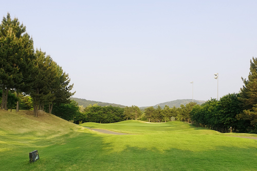 길게 치면 뒤쪽 언덕을 넘어 O.B의 위험이 있다.